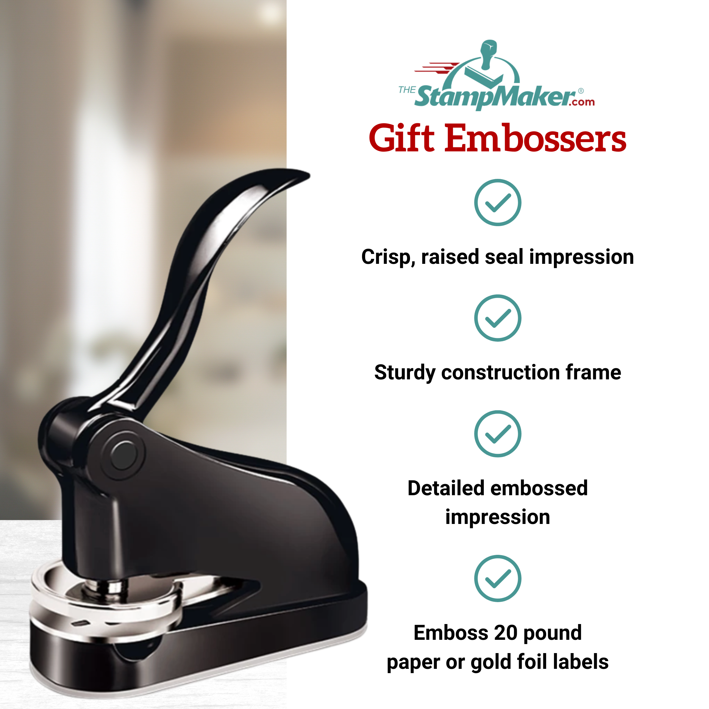 • Classic gift embosser with sturdy metal frame construction.