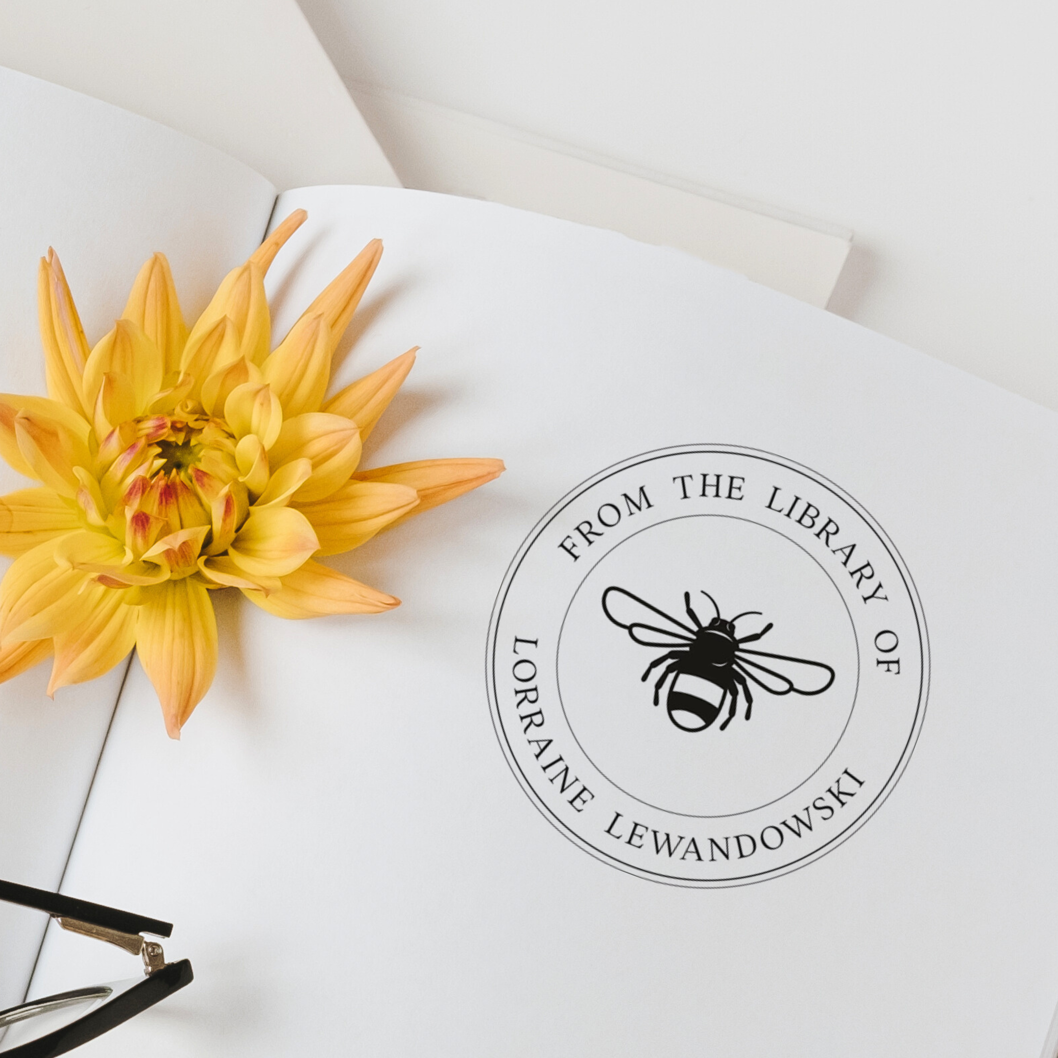 This circular bumble bee stamp is perfect for stamping the inside cover of your books! Start with our template and add your stamp text to customize your library stamp. Our stamps are laser engraved and assembled by our experienced team. Whether you are lending a book to a friend or looking for a unique gift, this minimalist stamp will add a personal touch to your books!