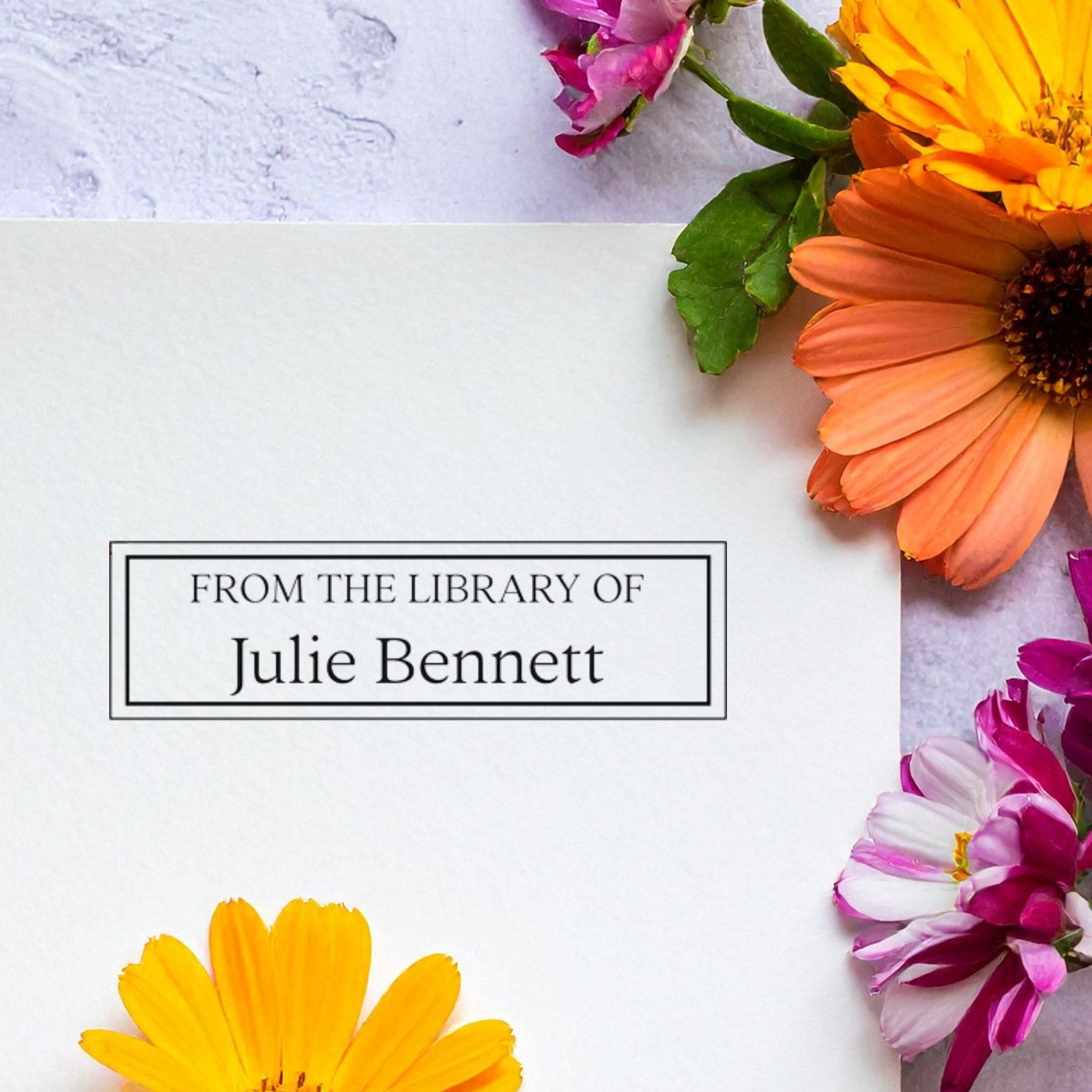 This classic design will look beautiful stamped on your books! Start with our template and add your stamp text to customize your library stamp. Our stamps are laser engraved for a crisp stamp impression. Stamp your books before lending them or gift your friend a "from the library of" stamp to use on their books!