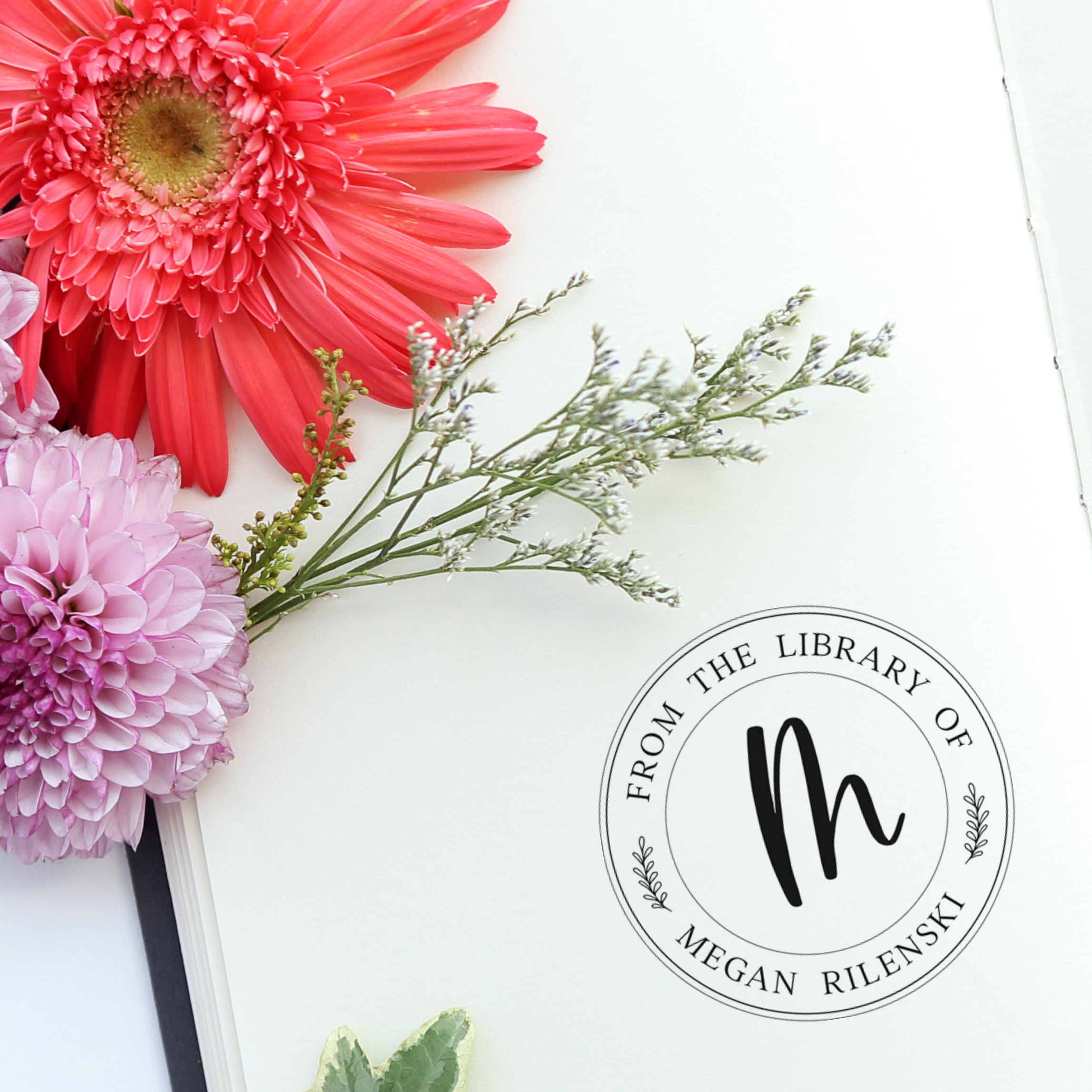 Great stamp if want to stamp your books before you lend them out, or give a "from the library of" stamp as a gift! Start with our template and add your stamp text to customize your library stamp. Our stamps are laser engraved and assembled by our experienced team. Order online and start decorating your books with this elegant monogram book stamp!