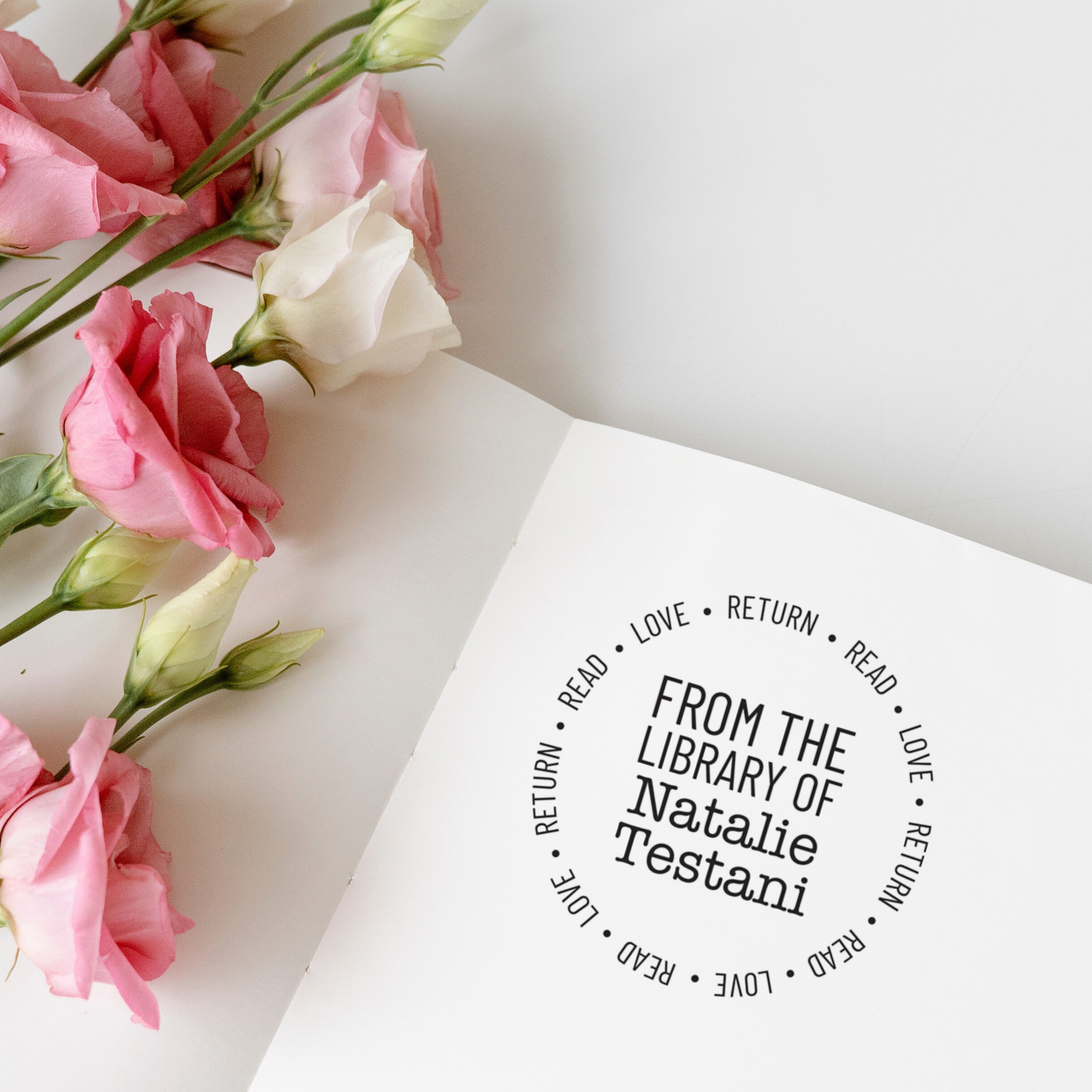This unique circular stamp is great if want to stamp your books before you lend them out, or give a "from the library of" stamp as a gift! Start with our template and add your stamp text to customize your library stamp. Our stamps are laser engraved and assembled by our experienced team. Add a personal touch to your library with this adorable custom book stamp!