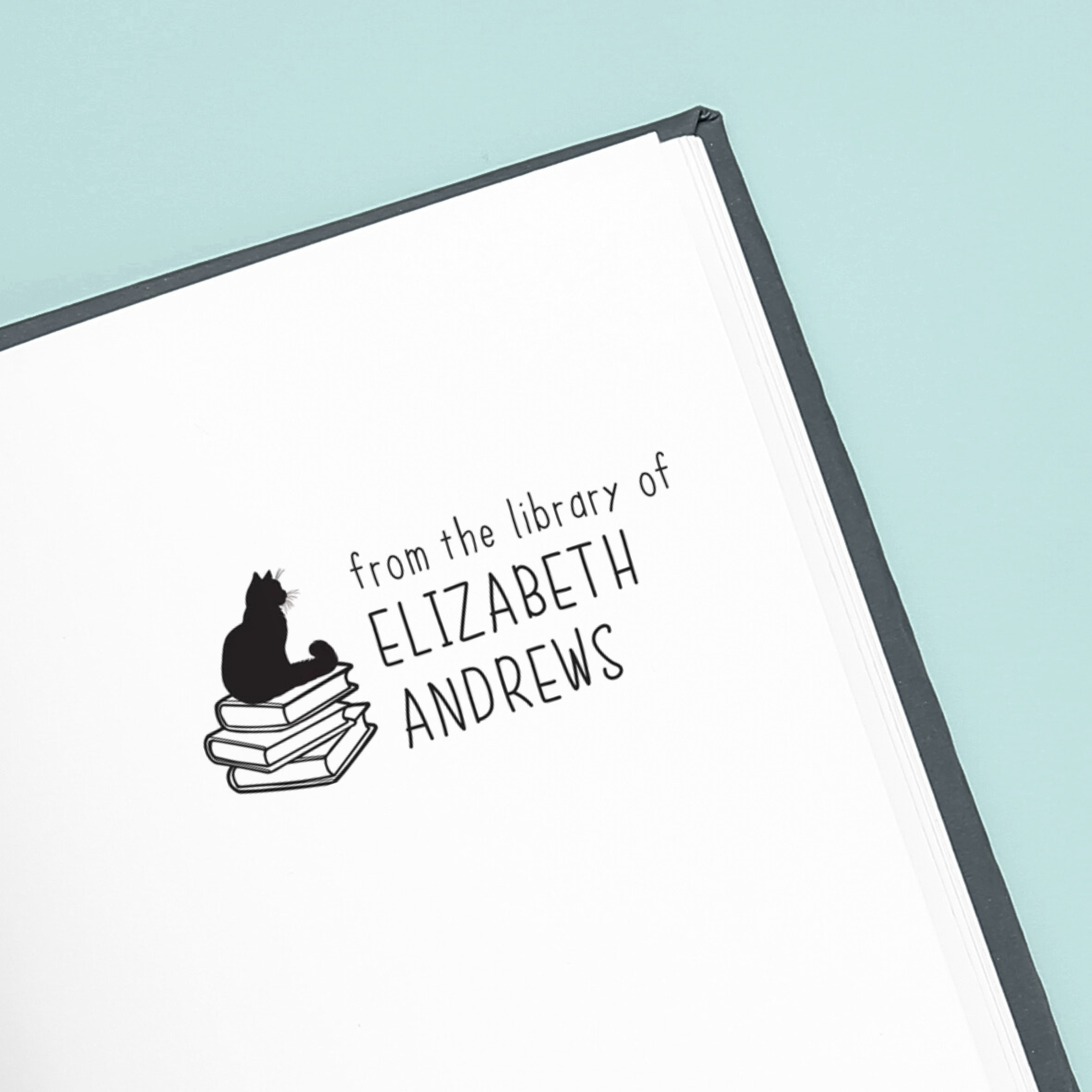 This cute cat book stamp is great if want to stamp your books before you lend them out, or give a "from the library of" stamp as a gift! Start with our template and add your stamp text to customize your library stamp. Our stamps are laser engraved for a crisp stamp impression. Order online and start stamping the inside cover of your books to add a special tocuh!