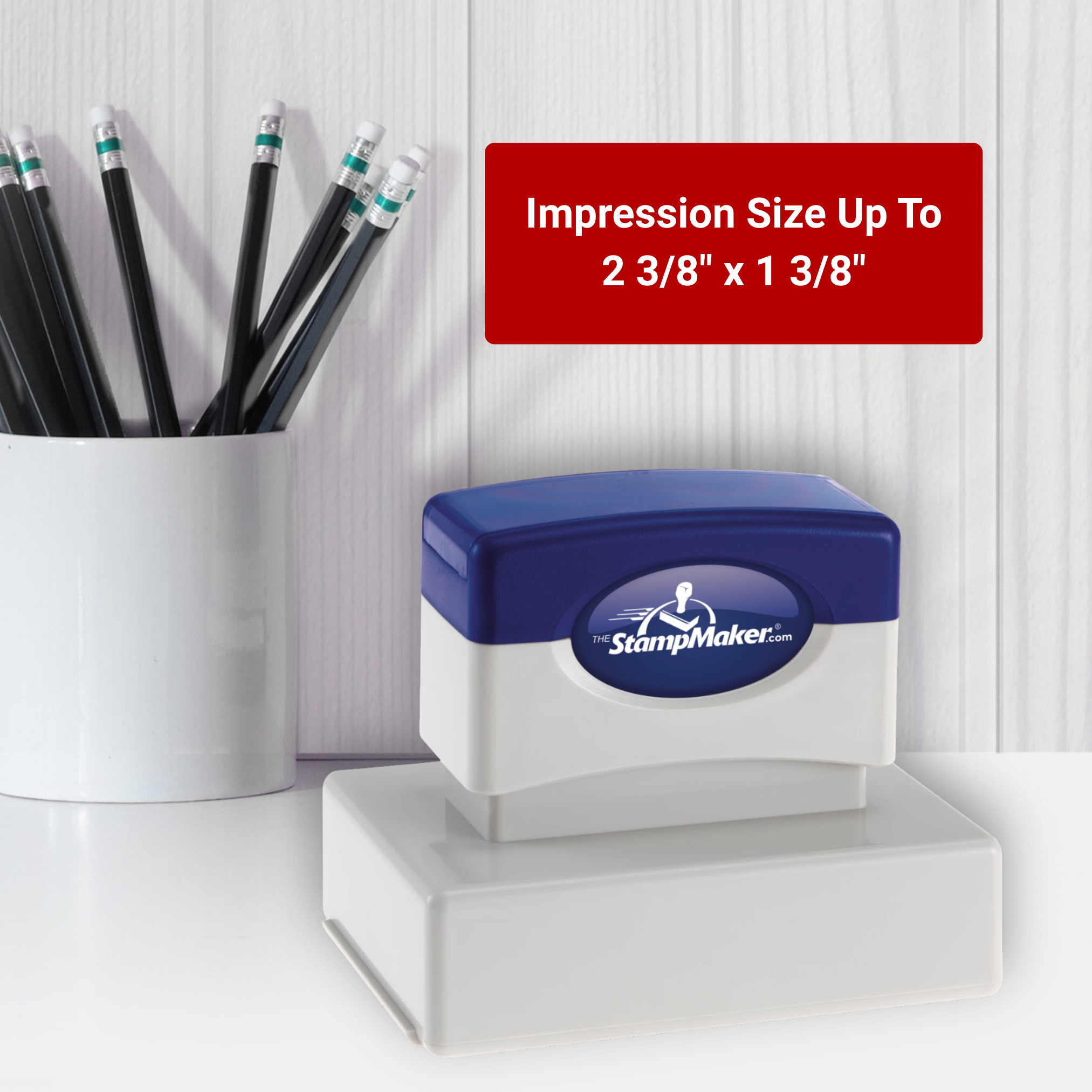 A stamp should be just a stamp, right? There were two issues with my order. First, I paid for express postage (after Christmas btw) to be received by Decmeber 28-29. I needed it on Dec 30 for a birthday. It arrived on Jan 2. What did I pay express for then? Also, the stamp is self inking and it does not ink uniformly. So, at this point I cannot recommend this company. There was another company I used and received a perfectly good stamp with a custom logo, as this was.