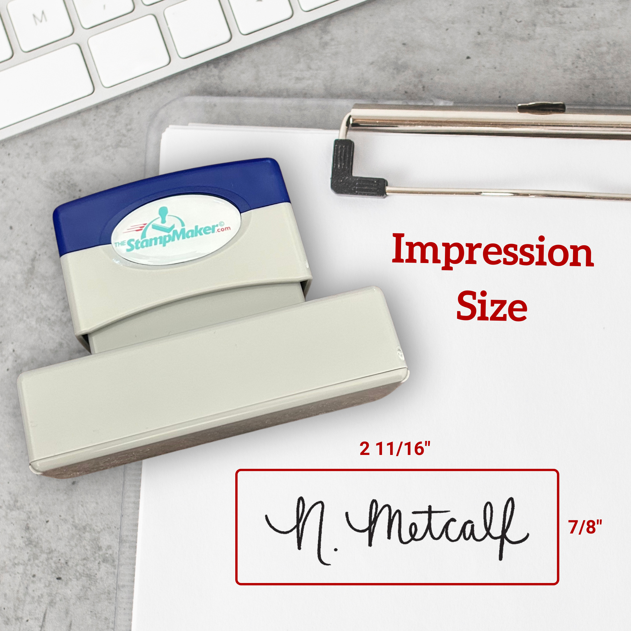 This is the second time I have ordered this stamp. I work remotely and need to have my boss's signature on the pay checks and important documents. This allows me to do my job efficiently and I highly recommend this stamp. Good quality, ink lasts a long time, and great customer service - you can't go wrong with this stamp.