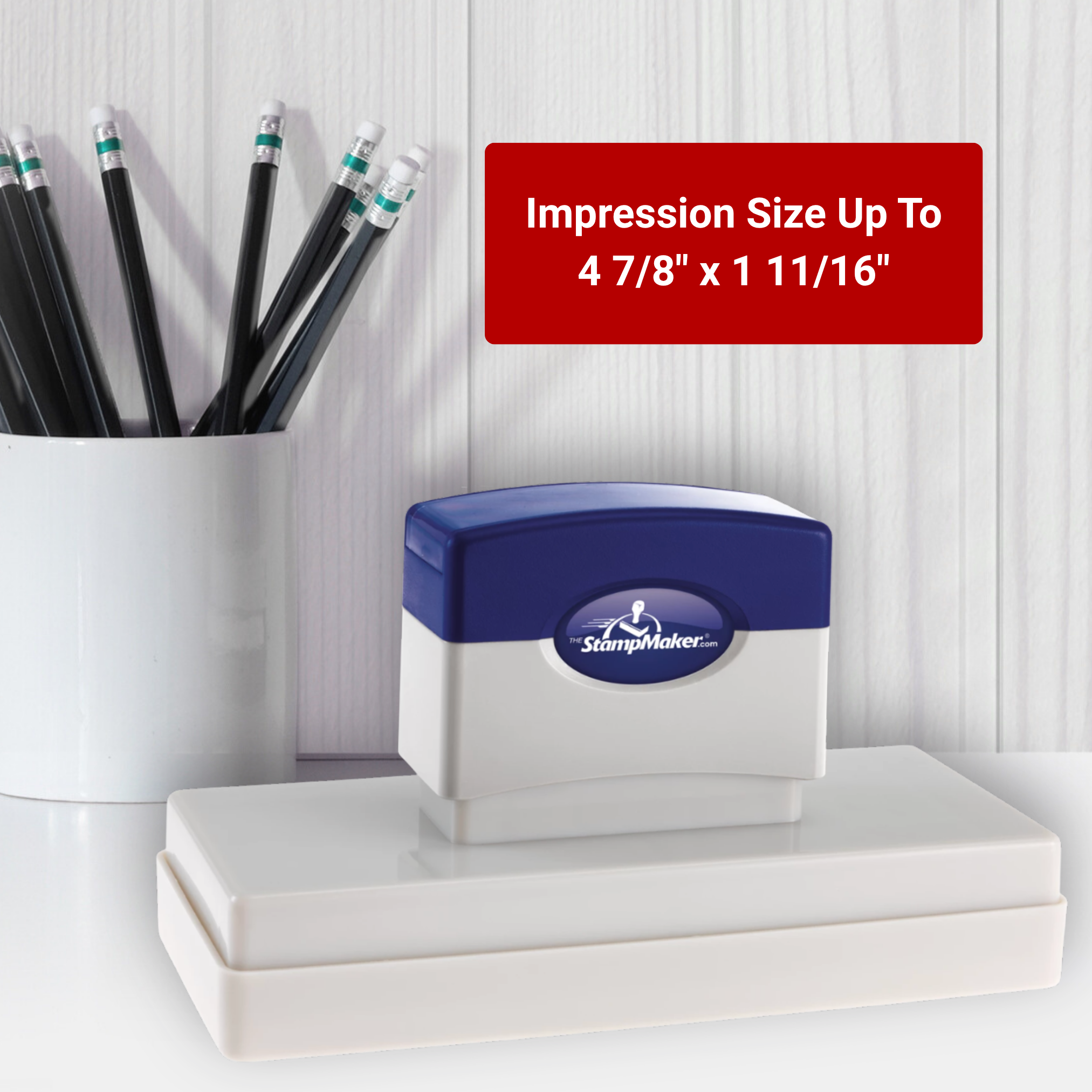 • Stamp impression size: 4 7/8" x 1 11/16".