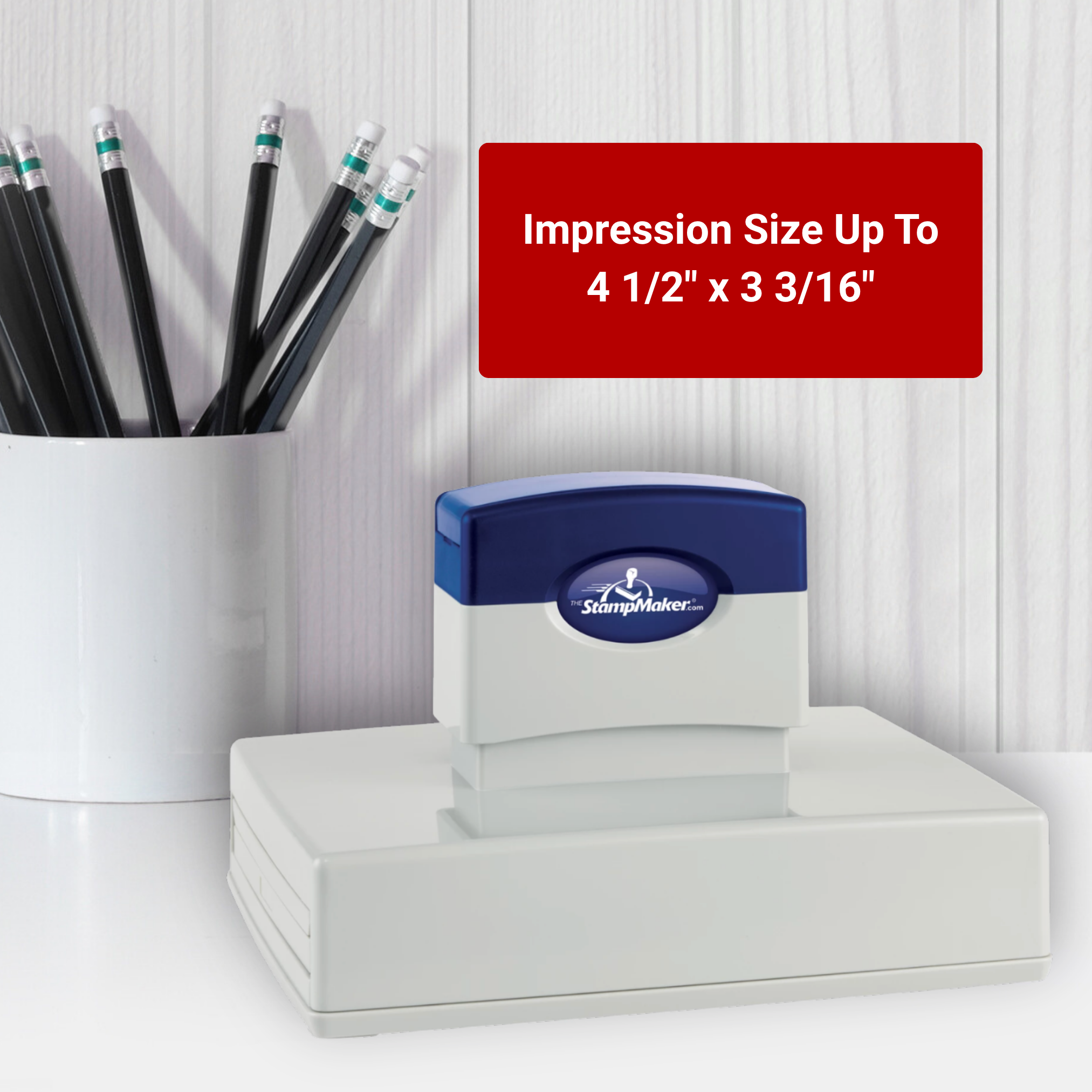 • Our largest self-inking stamp offers high quality and high detail custom stamping.