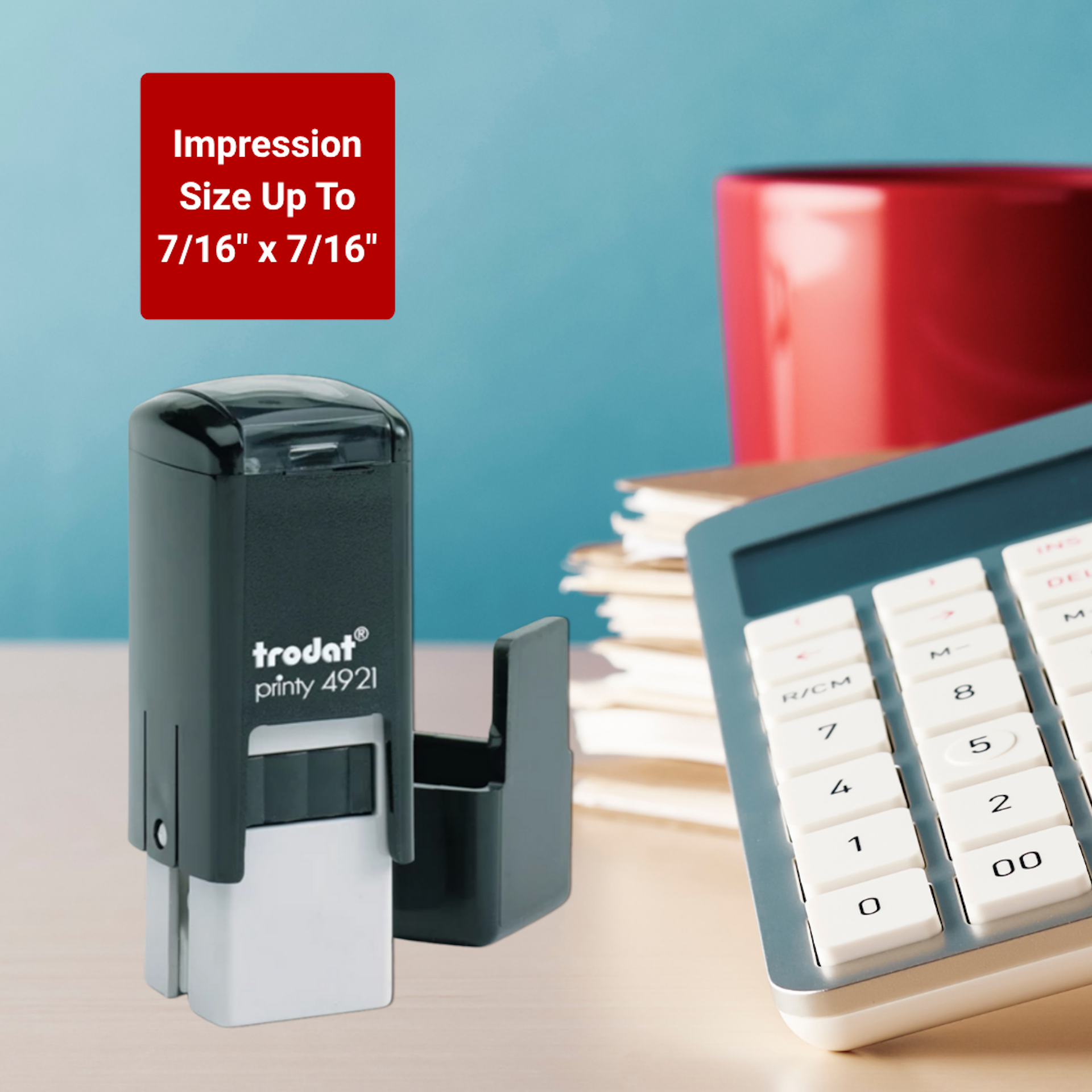 Trodat Printy stamps are clean, easy to use and can be re-inked if needed. This Trodat self-inking stamp is perfect for home or office use and is crafted with high quality materials to ensure your satisfaction. Simply design your stamp with your custom text, artwork or logo by choosing "Customize and Add to Cart" and our design tool will guide you!