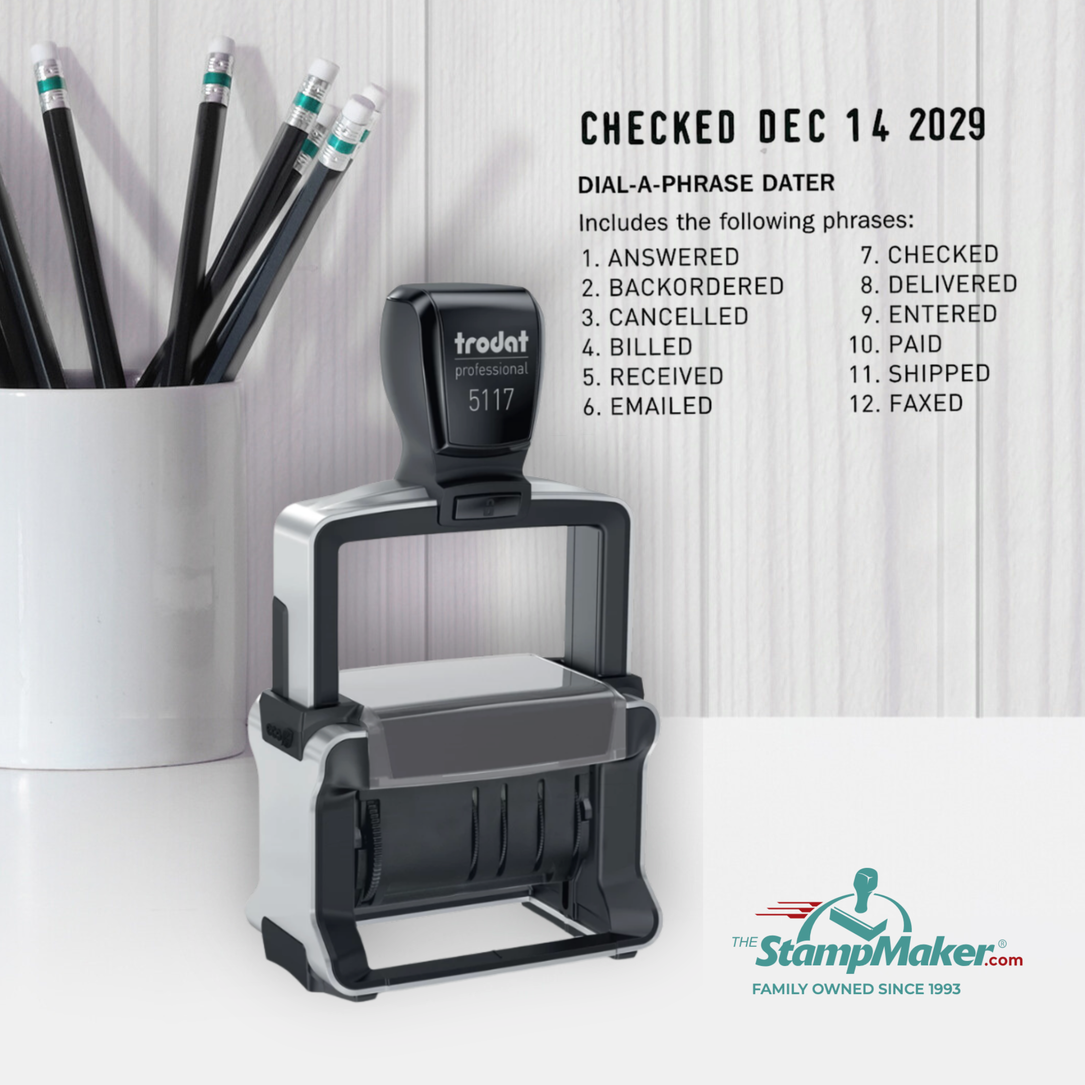 Trodat 5117 Self Inking Phrase & Date Stamp
