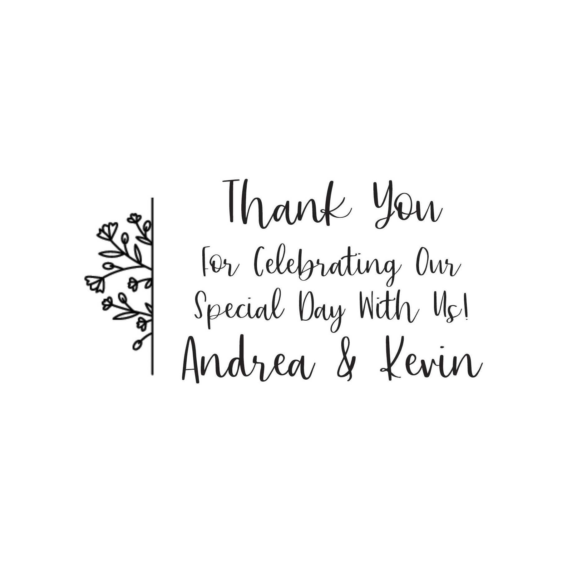 Wood Handle Wedding Thank You Stamp - Make your own customized stamp to create unique cards for your wedding! Stamp size 4"W x 2"H. This stamp requires a separate stamp pad. Get creative and use this in stock wood handle stamp with various colored stamp pads and techniques to add your flare to your wedding Cards.
