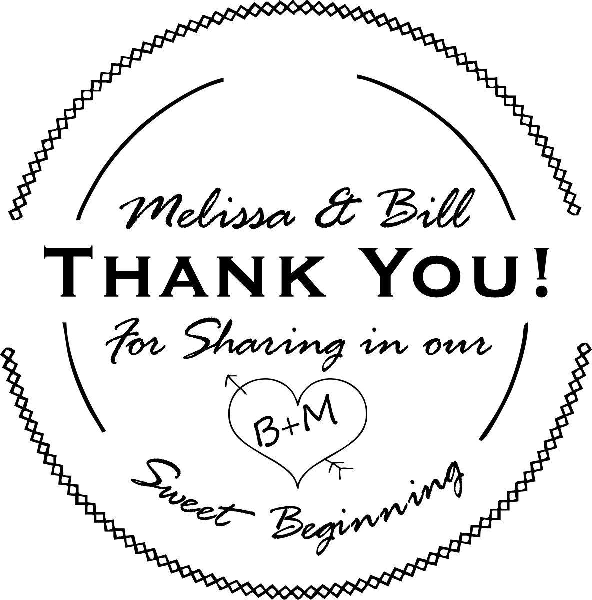 Wood handle wedding stamps can be used to make your own customized Thank You Cards for your wedding! Stamp size 2 7/8" H x 2 7/8" W. This stamp requires a separate stamp pad.