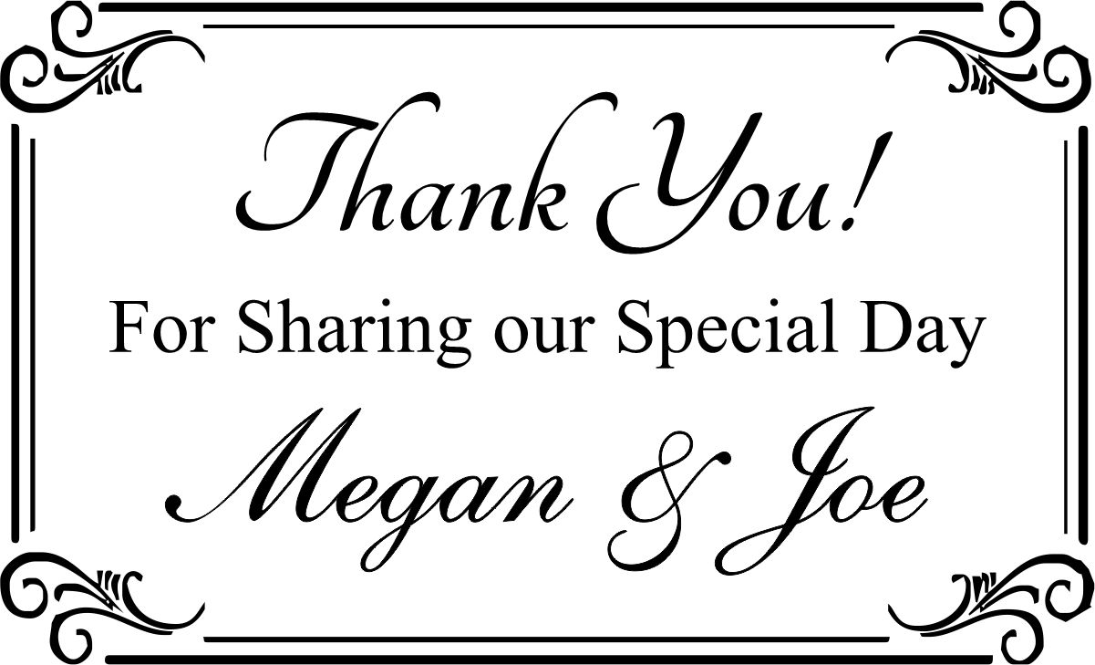 A wedding stamp can be used to make your own customized Thank You Cards for your wedding! Stamp size 2" H x 3 1/4" W. This stamp requires a separate stamp pad. Get creative and use this in stock wood handle stamp with various colored stamp pads and techniques to add your flare to your wedding Cards.