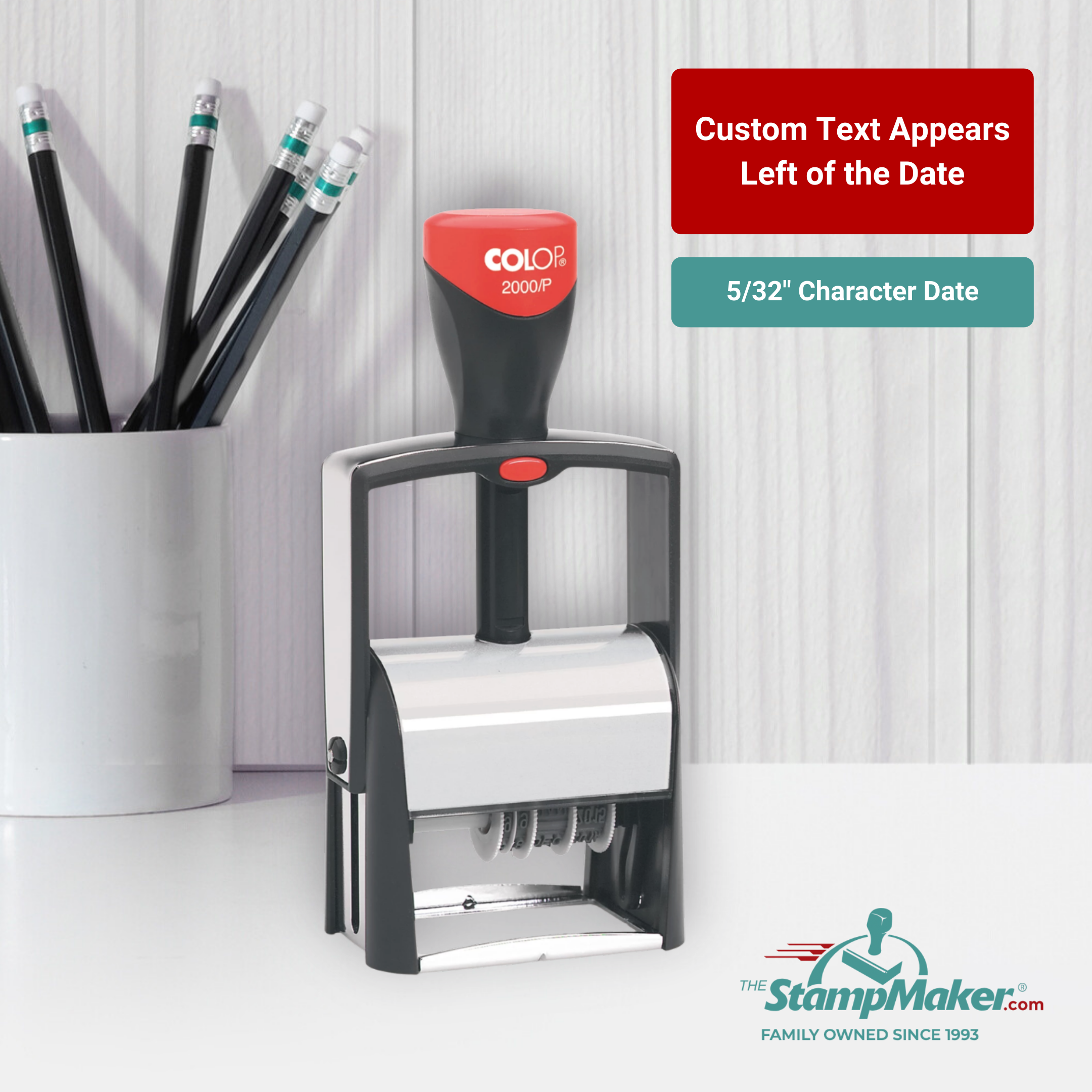 Easily design and order your dater stamp with your custom text. Colop date stamps have a smooth action movement for easy stamping and consistent stamp impressions. Streamline business processes and experience increased efficiency when ordering this date stamp online!